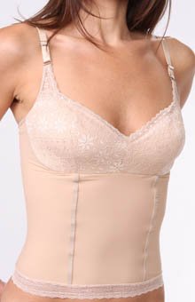 Medium Control with body sculpting. Lightweight fabric with 22% lycra for unexpected shaping. Shapes and smoothes tummy and midriff. Contoured soft cups with lace overlay provides the support of a bra, without the wires. Body-shaping seaming provides additional contouring of the waistline. Lightweight fabric wicks moisture away from the body.